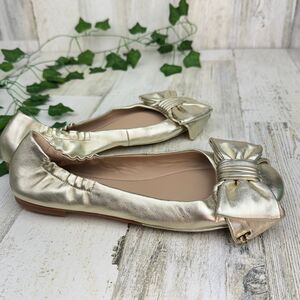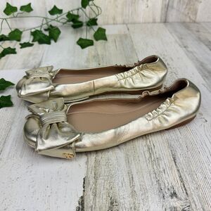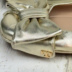 Tory Burch Flats Bow Driver Ballerina Divine Gold Ballet Gold Logo Shoes 6M