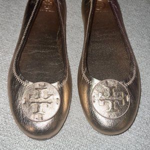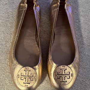 Worn once! Basically brand new - a sparkling logo medallion provides an elegant flourish for this smooth leather ballet flat.