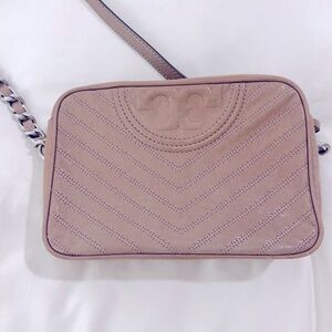 Tory Burch Fleming Beige Quilted Crossbody Bag
