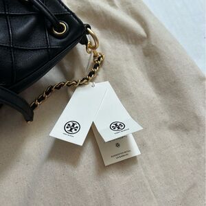 Tory Burch Fleming Black Quilted Soft Leather Bucket Bag NWT
