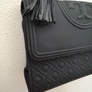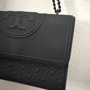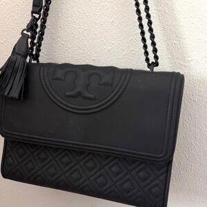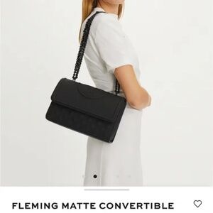 Tory Burch Fleming Matte Black Convertible Leather Handbag