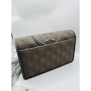 Tory Burch Fleming Matte Wallet on Chain Crossbody Clutch Gray Heron New w/tag