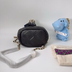 Tory Burch Fleming Mini Soft Quilted Leather Bucket Bag Crossbody Black Gold NWT