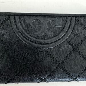 Tory Burch Fleming Slim Wallet Quilted Soft Leather Black
