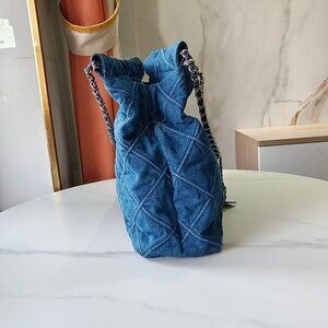 Tory Burch Fleming Soft Drawstring Tote Bag Denim