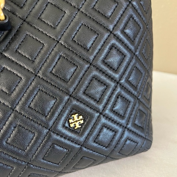 Tory Burch Fleming Tote 41885 Black Quilted Leather Triple Compartment