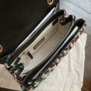 Tory Burch Fleming Tweed Convertible Shoulder Bag Brown Butter Yellow Designer