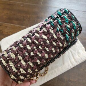 Tory Burch Fleming Tweed Convertible Shoulder Bag Brown Butter Yellow Designer