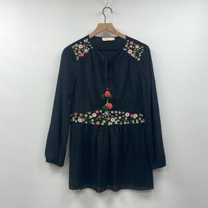 Tory Burch Fleur Embroidered Floral Woven Peasant Tunic Blouse Boho Black 8