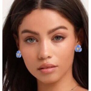 Tory Burch Fleur Flower Stud Earrings Blue OS