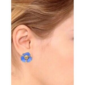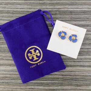 Tory Burch Fleur Flower Stud Earrings Blue OS