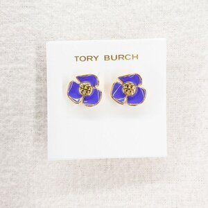 Tory Burch Fleur Flower Stud Earrings Purple OS