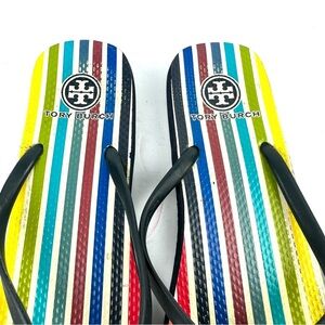Tory Burch Flip Flop 10.5 Rubber Striped Slip On Sandal Womens