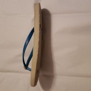 Nice pair of Tory Burch flip flops. Turquoise thong with turquoise, green and brown floral pattern on footbed. Good condition. SZ 7. Ships out quickly. *** Check out my closet for more Tory Burch flip flops and flats/ballerina shoes, downsizing my collection.***