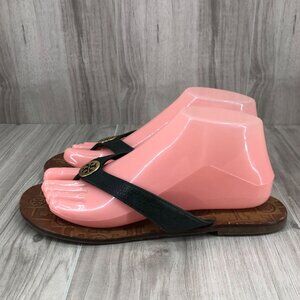 Tory Burch Flip Flops Womens 8M Black Leather Slip On Sandals