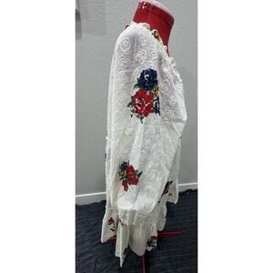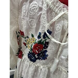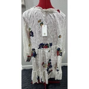 Tory Burch Floral Embroidered Dress Long Sleeve White Tiered Mini