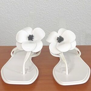 Tory Burch Floral Jelly Thong Slide Sandal SZ 9 White + Black