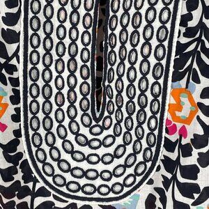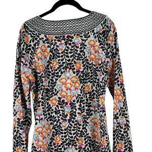 Tory Burch Floral Print Long Sleeve Keyhole Neck Embroidered Cotton Blouse Tunic Top SZ 6