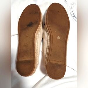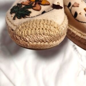 Tory Burch Espadrilles size 9, leather, Floral, tan color,emblemish,upper,leather lining, rubber sole, footed jute.