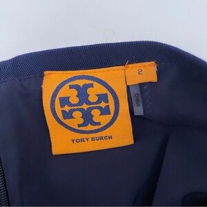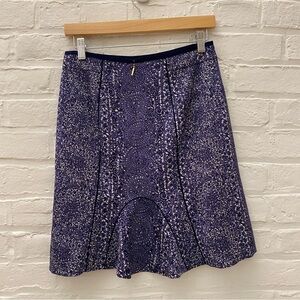 Tory Burch || Fluted Floral Medallion Logo Skirt Blue Purple 2