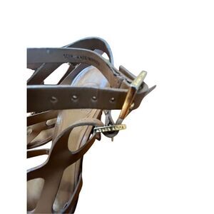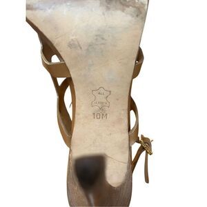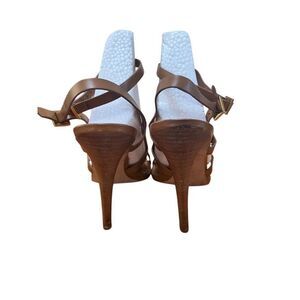 Tory Burch Francesca Camel Leather & Gold Strappy Ankle Stiletto High Heels 10