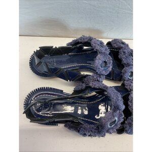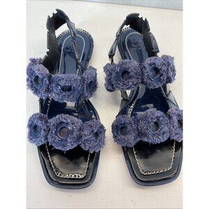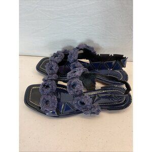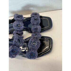 Tory Burch Freya Eyelet Sandal Navy Blue sling back Patent Leather flat 8.5M