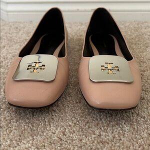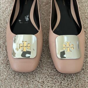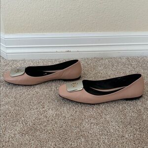 Our square-toe ballet is a modern take on a classic silhouette. The leather flat is detailed with a square logo plate and contrast Double T.