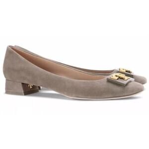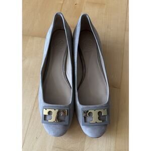 Tory Burch GIGI ROUNDED- Toe Flat Grey Suede 6 FLAW