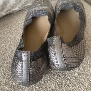 Tory Burch Gabby Ballet-washed Metallic Python Pewter Gray Size 7