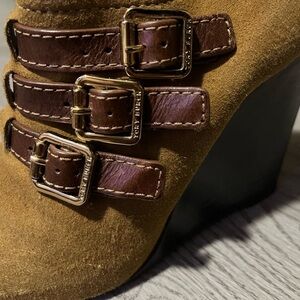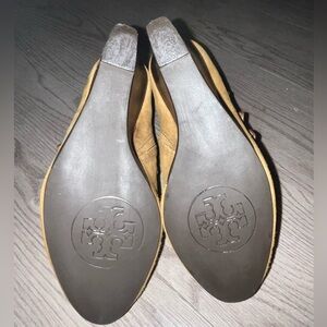 Accents: Buckled Straps, Goldtone Hardware, Has Tory Burch Brand Embossed on Each Buckle