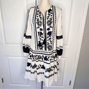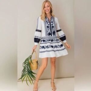 Tory Burch Gabriella Embroidered Dress Size 4 White Blue Floral Swiss Dot