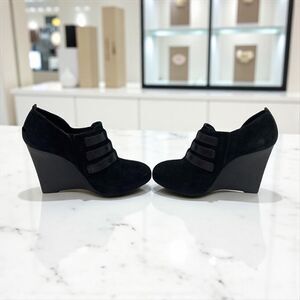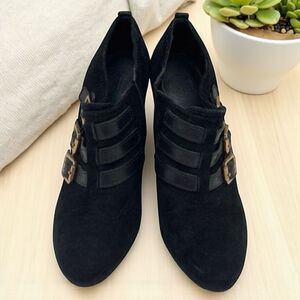 Tory Burch Gabrielle Buckle Suede black Wedge Booties size 6.5M women’s