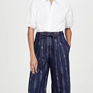 Tory Burch Gemini Jeans Jacquard Blue Denim Wide Leg Trousers 6 NWT (Orig. $355)