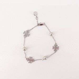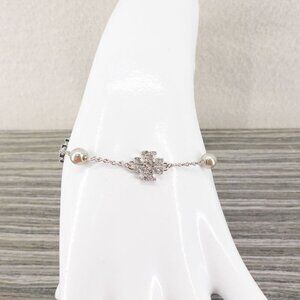 Tory Burch Gemstones and Pearl Bracelet Silver OS