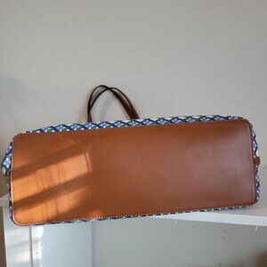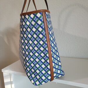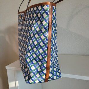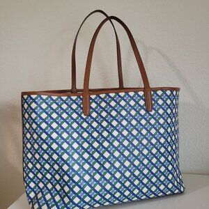 Tory Burch Geo Logo Magnet Clip Tote In Blue Green Shoulder Bag