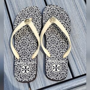 Tory Burch Geometric Brown & Cream Thong Flip Flop Sandal Size 9/10