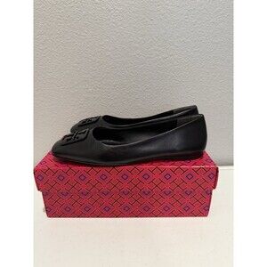 Tory Burch Georgia Ballet Flats Size 7.5 Leather Perfect Black Paris Goat $248