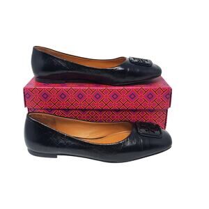 Tory Burch Georgia Ballet Wrinkle Calf Leather Perfect Black 86721 Size US 6