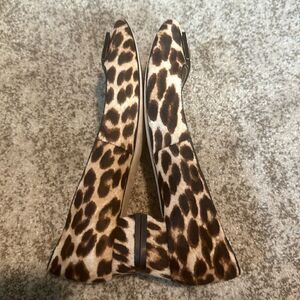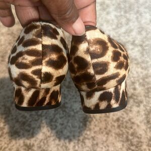 Mohair animal print flats with block heel in line new condition with no sign of wear. Logo in gold surrounded by a black border. Excellent condition.