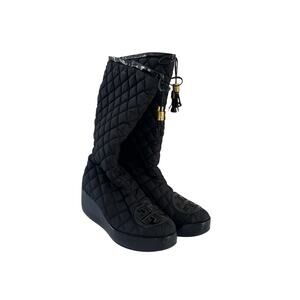 Tory Burch Gigi Nylon Quilted Wedge Platform Snow Boots Womens Size 7.5 Black