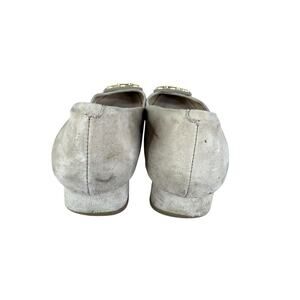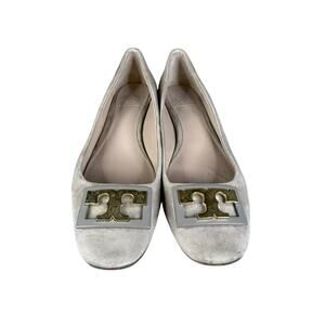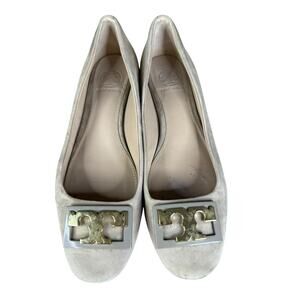 Tory Burch Gigi Suede Logo Block Heel Pumps Beige 6.5 Classic Minimalistic