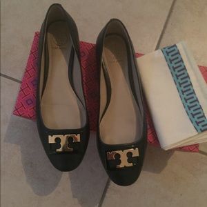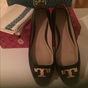 Black Gigi ballet Tory Burch Flats with gold T, only used a couple of times, very small scuff on sole can not be seen, these beauties can be dressed up or down, will include box and dust bag and shopping bag.