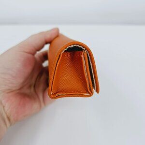 Tory Burch Glasses Case Orange Saffiano Leather Gold Metal Logo Designer Stylish