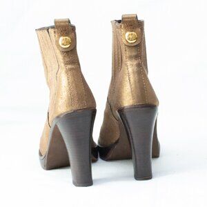Tory Burch Gold Bronze Chelsea Ankle Boots With Gold Logo Monogram Block Platform Heel Size 5 Idea for Party / Parties or Business Casual