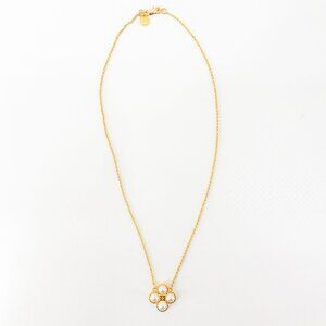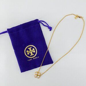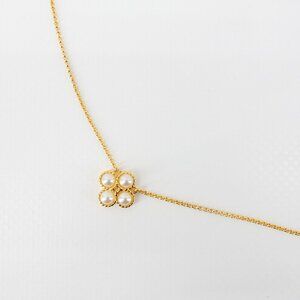 Tory Burch Gold Clover Pearl Logo Necklace OS