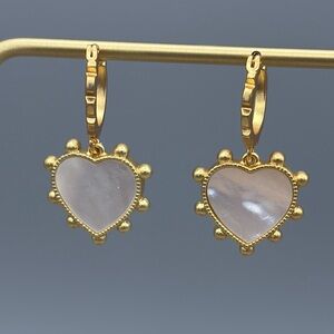 Tory Burch Gold Huggie Hoops with White Mother of Pearl Heart Drops