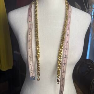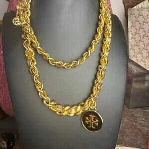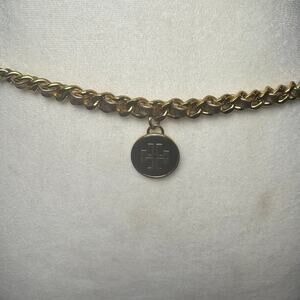Tory Burch Gold Leather and Metal Belt Medallion Necklace 32"