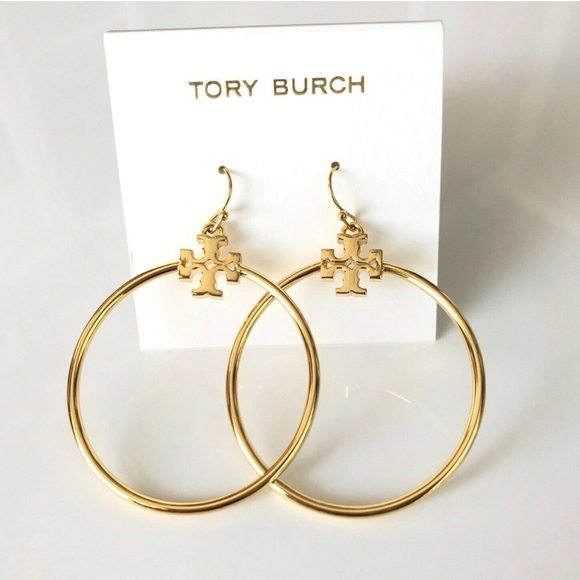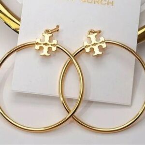 Tory Burch Gold Logo Hoop Earrings