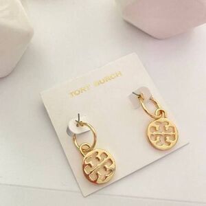 Tory Burch Gold Logo Circle Drop Hoop Earrings