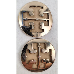 Add a designer touch to your DIY, upcycling, or repair projects with this set of 4 authentic Tory Burch gold-tone logo medallions/buttons. These iconic circular pieces feature the signature double-T cutout and enamel logo designs, perfect for replacing lost hardware on Tory Burch shoes, handbags, or accessories — or for creative upcycle and craft projects.